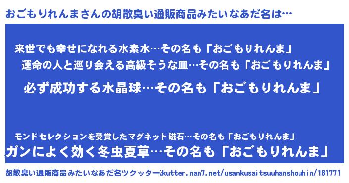 | ヘコむあだ名 | 『おごもー』『おごもりれんま(震え声)』 |