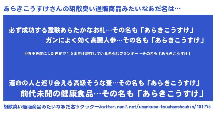 | 意味不明あだ名 | 『住所不定無職あらきこうすけ(85歳)』 |