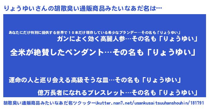 | 意味不明あだ名 | 『とにかく怪しいりょうゆい』 |