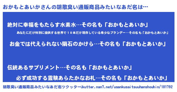 | 女子向けラノベタイトル風あだ名 | 『おかもとあいか恋絵巻』 |