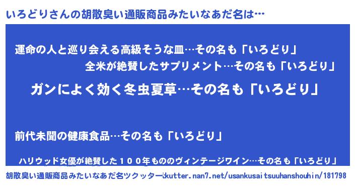 | 意味不明あだ名 | 『自称いろどり』『いろどりフォーエバー』 |