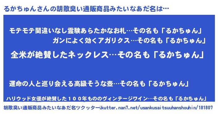 | ヘコむあだ名 | 『るかっ子』『るかっふぃ~』 |