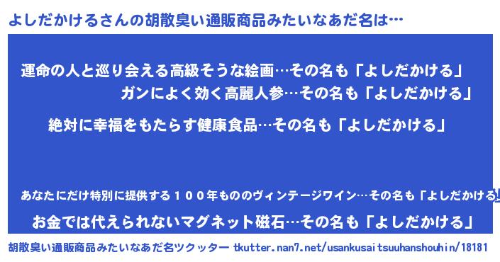 | 欧米人風あだ名 | 『ダルビッシュよしだかける』 |