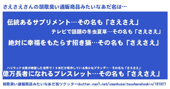 | ピコ太郎風あだ名 | 『ピコサ郎』『サエ一郎』『サコ一郎』 |