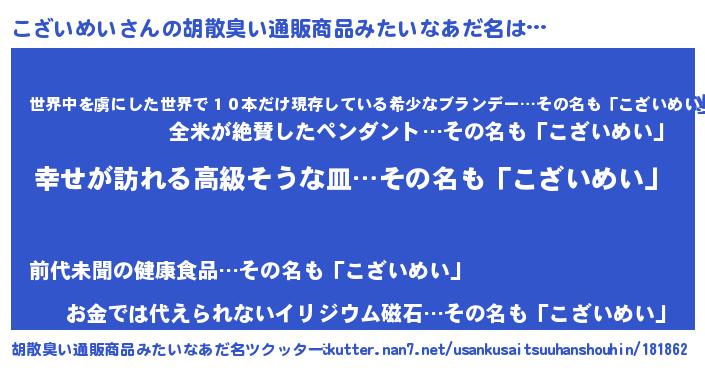 | 伝説のあだ名 | 『秘められし陰陽師こざいめい』 |
