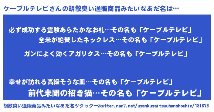 | 意味不明あだ名 | 『自称ケーブルテレビ』 |