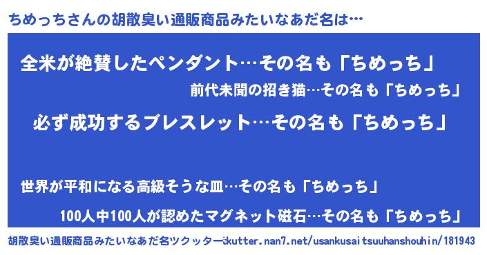 | 恥ずかしいあだ名 | 『プリティーちめっち』『チメリンリン』 |