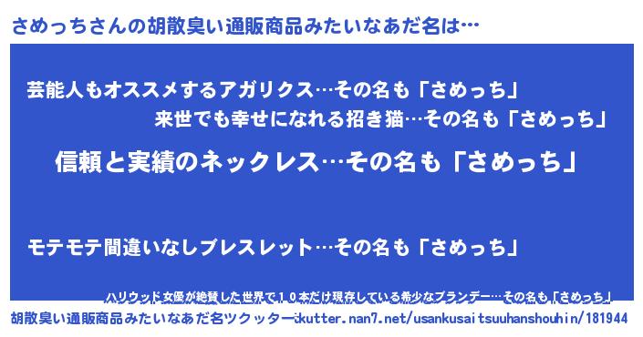 | 意味不明あだ名 | 『とにかく怪しいさめっち』 |