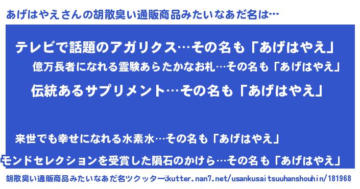 | ヘコむあだ名 | 『あげお』『あげっふぃ~』 |