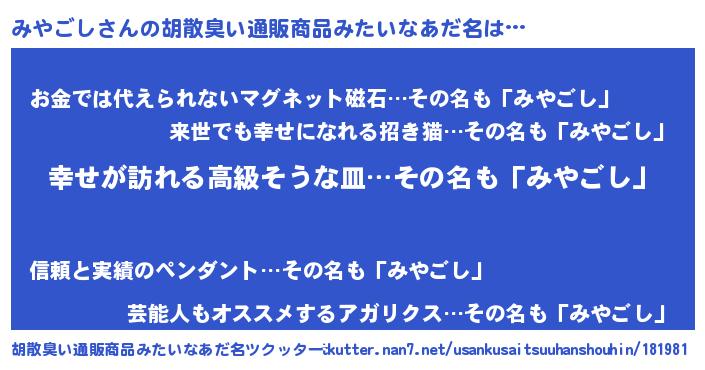 | ポケモン風あだ名 | 『ミヤゴンZ』『ミヤゴダネ』 |