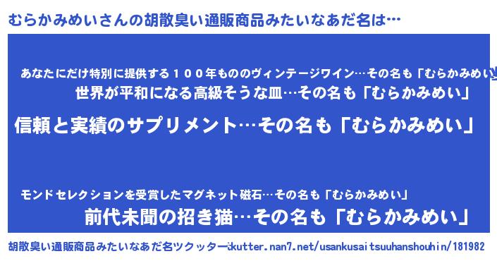 | 意味不明あだ名 | 『とにかく怪しいむらかみめい』 |