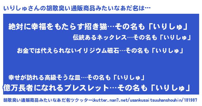 | ヒーロー風カッコイイあだ名 | 『愛の使者いりしゅ』『ネオイリシュ』 |