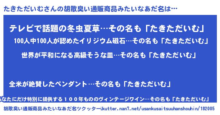 | 意味不明あだ名 | 『たきただいむフォーエバー』 |