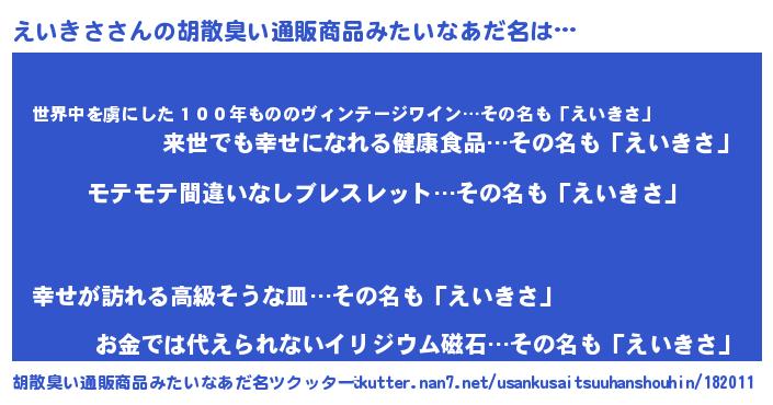 | 意味不明あだ名 | 『ペロリンえいきさ』『永久保存えいきさ』 |