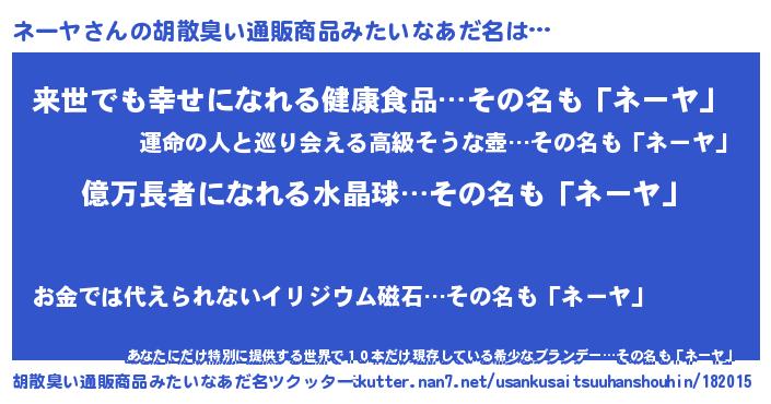 | 意味不明あだ名 | 『ペロリンネーヤ』『永久保存ネーヤ』 |