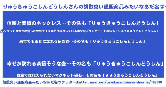 | 意味不明あだ名 | 『永久保存りゅうきゅうこしんどうしん』 |