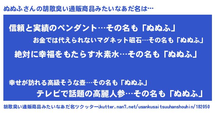 | ヘコむあだ名 | 『ぬぬふ(遠い目)』『ぬぬぷりん』 |