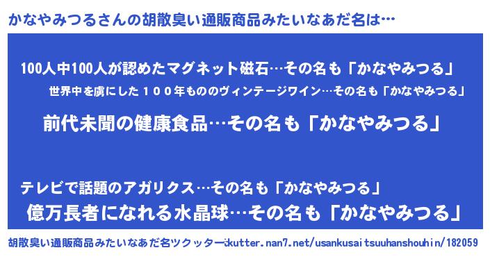 | ヘコむあだ名 | 『かなやみつる(苦笑)』『かなふぇ~』 |