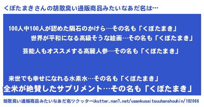 | 男性向けラノベタイトル風あだ名 | 『くぼたまきに滅ぼされるだけの簡単なお仕事です』 |