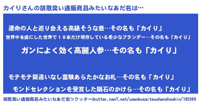 | ヒーロー風カッコイイあだ名 | 『ウルトラ戦士カイリ』『愛の使者カイり』 |