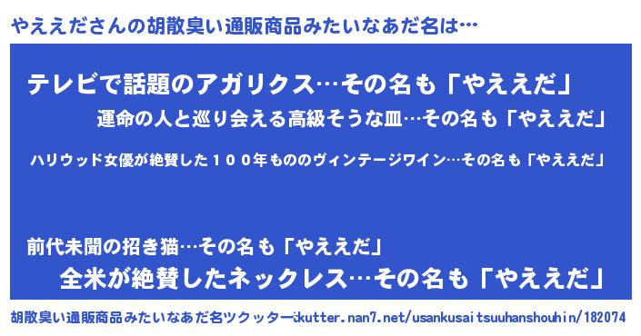 | 意味不明あだ名 | 『住所不定無職やええだ(13歳)』 |