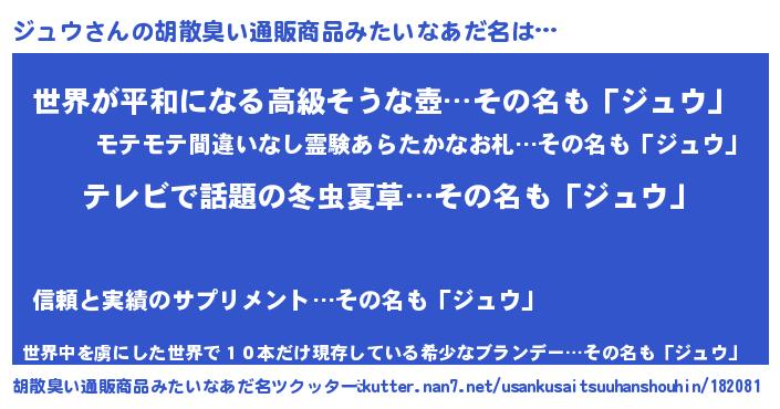 | 意味不明あだ名 | 『自称ジュウ』『ジュウフォーエバー』 |