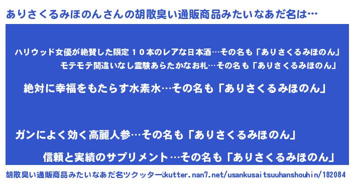 | ヘコむあだ名 | 『ありさくるみほのん(遠い目)』『ありっぺ』 |