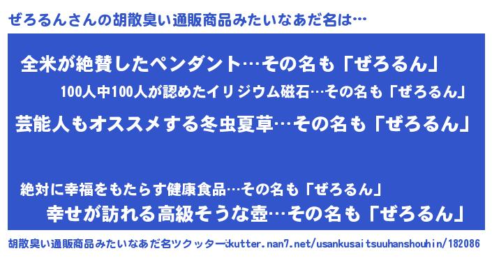 | 男性向けラノベタイトル風あだ名 | 『ぜろるんに滅ぼされるだけの簡単なお仕事です』 |