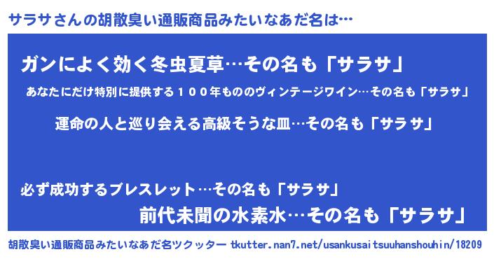 | 意味不明あだ名 | 『サラサフォーエバー』『自称サラサ』 |