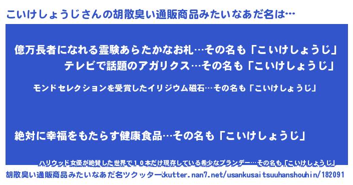 | 男性向けラノベタイトル風あだ名 | 『ノーゲーム・ノーコイケショウジ』 |