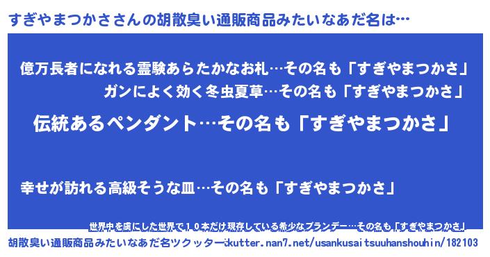 | 意味不明あだ名 | 『とにかく怪しいすぎやまつかさ』 |