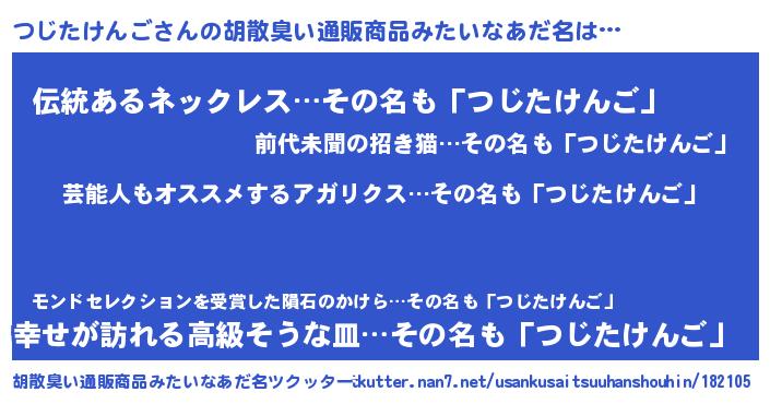 | 意味不明あだ名 | 『自称つじたけんご』 |