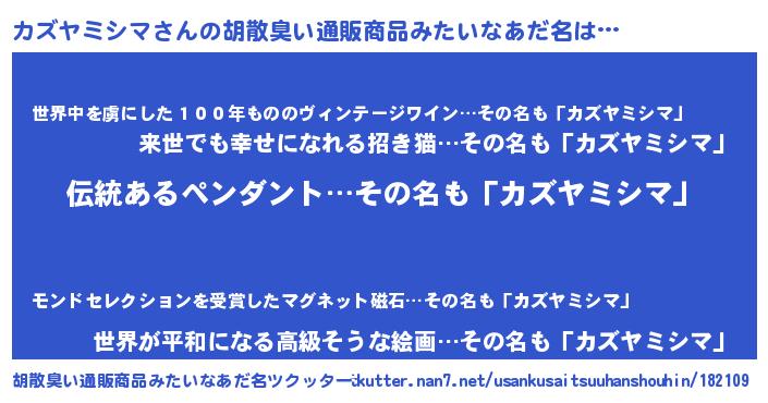 | 意味不明あだ名 | 『とにかく怪しいカズヤミシマ』 |
