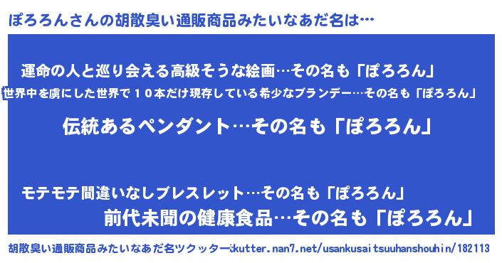 | 意味不明あだ名 | 『とにかく怪しいぽろろん』 |