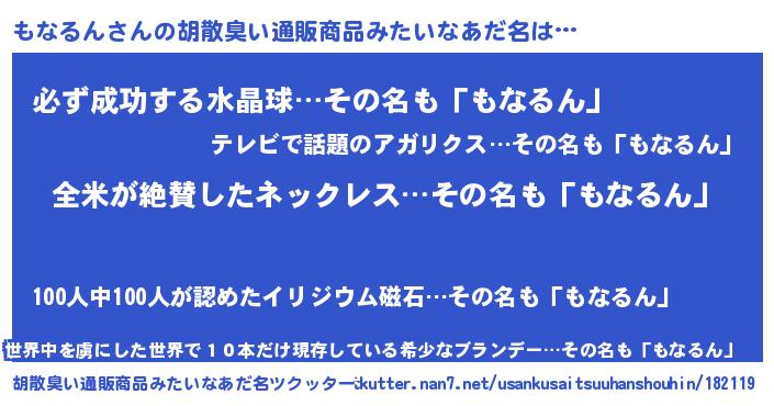 | 女子向けラノベタイトル風あだ名 | 『もなるん様がみてる』『闇のもなるん』 |