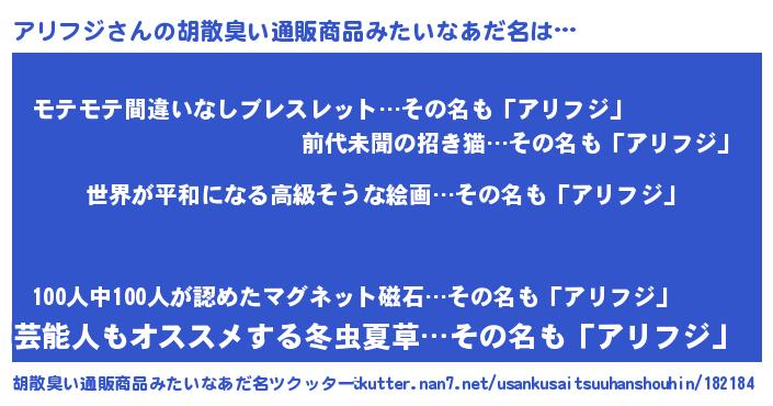 アリフジさんの胡散臭い通販商品みたいなあだ名をツクッター!