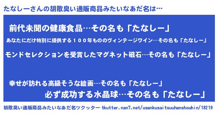 | ヘコむあだ名 | 『たなしー(笑)』『たなにゅー』 |