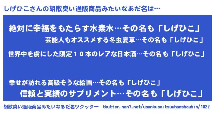 | ピコ太郎風あだ名 | 『ピコシ郎』『シゲ六郎』『ピシ三郎』 |