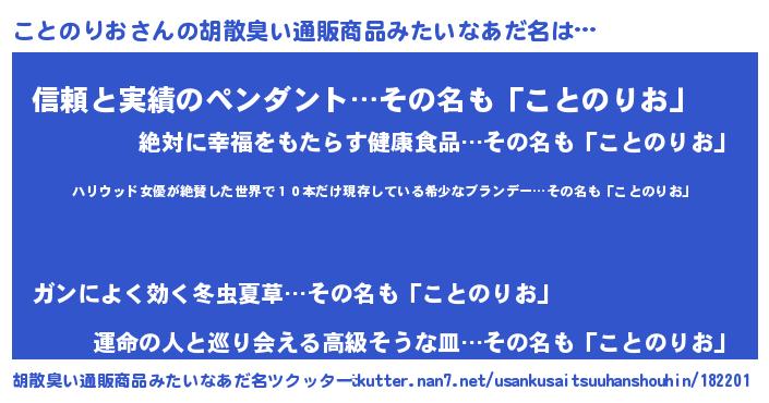 | 意味不明あだ名 | 『住所不定無職ことのりお(81歳)』 |