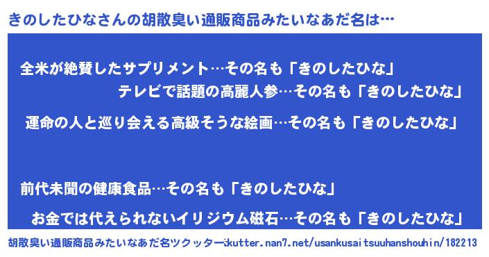 | 肩書あだ名 | 『きのしたひな大佐』『きのしたひな船長』 |