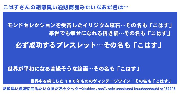 | ヘコむあだ名 | 『こはふぇ~』『こはす(苦笑)』 |