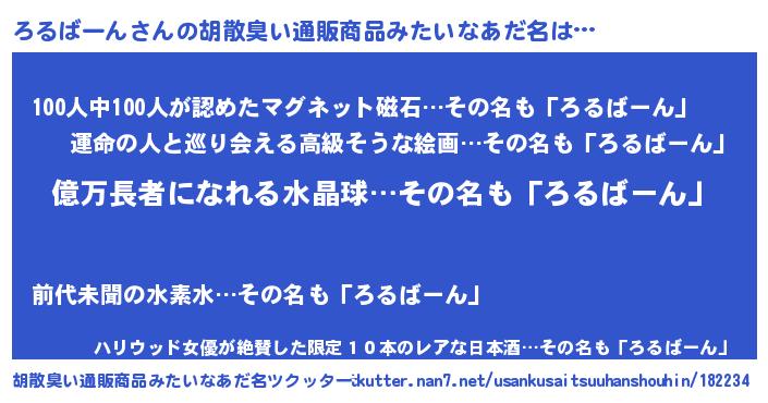 | ヘコむあだ名 | 『ろるにゅー』『牛乳』『ろる太郎』 |