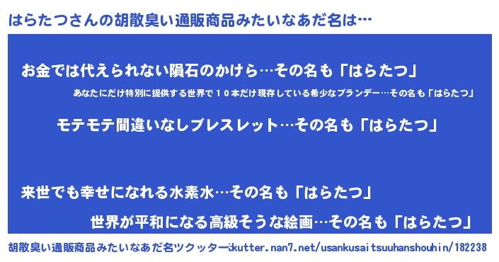 | 男性向けラノベタイトル風あだ名 | 『はらたつの憂鬱』 |