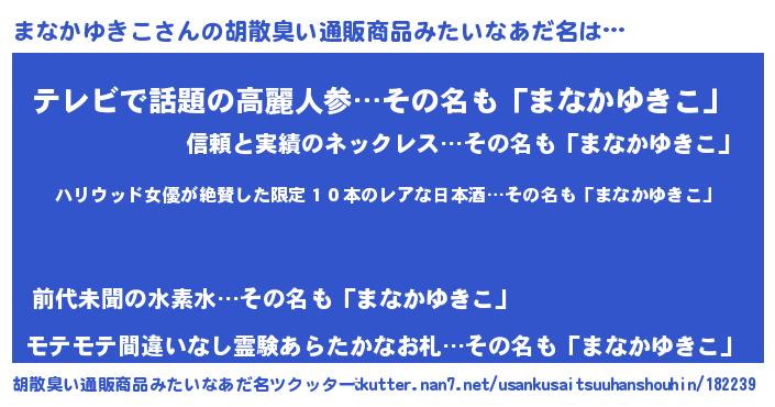 | 恥ずかしいあだ名 | 『マナカユキコデラックス』『まなちん』 |