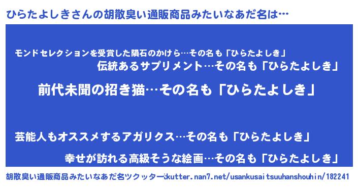 | 意味不明あだ名 | 『永久保存ひらたよしき』 |