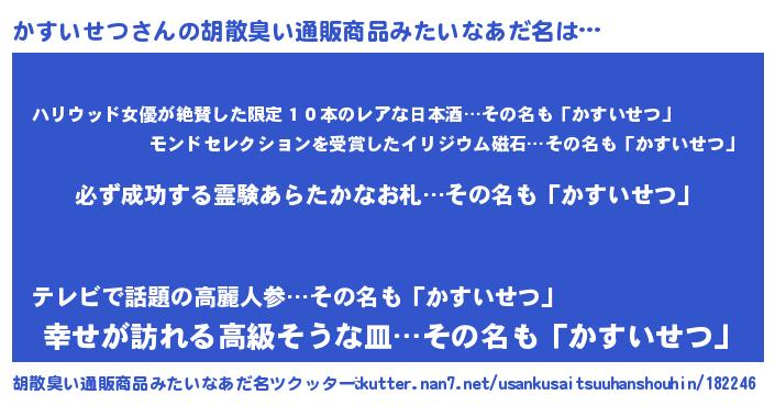 | 男性向けラノベタイトル風あだ名 | 『かすいせつの憂鬱』 |