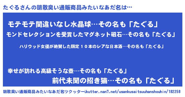 | 恥ずかしいあだ名 | 『プリティーたぐる』『たぐちん』 |