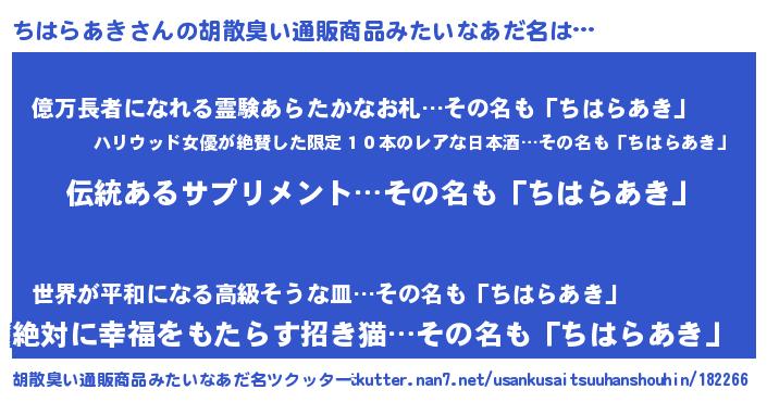 | 恥ずかしいあだ名 | 『チハリンリン』『プリティーちはらあき』 |
