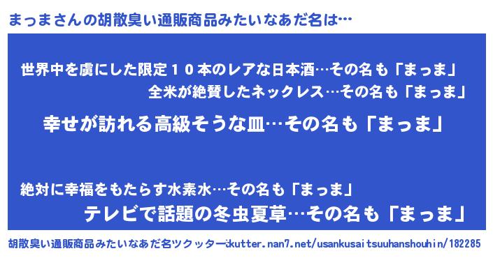 | 意味不明あだ名 | 『まっまフォーエバー』『自称まっま』 |