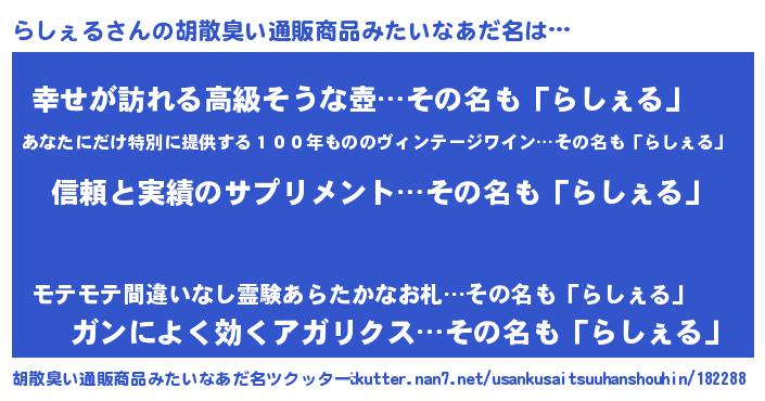 | 意味不明あだ名 | 『とにかく怪しいらしぇる』 |